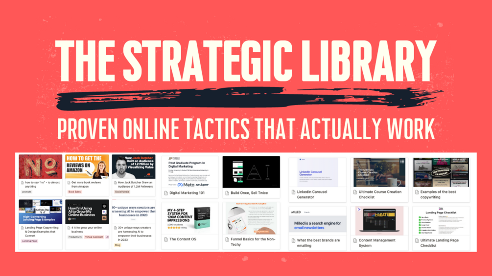 Whether you're growing a personal brand, creating/running an online business, starting a newsletter, or building authority in the online world, the Strategic Library will help you actually get there.
